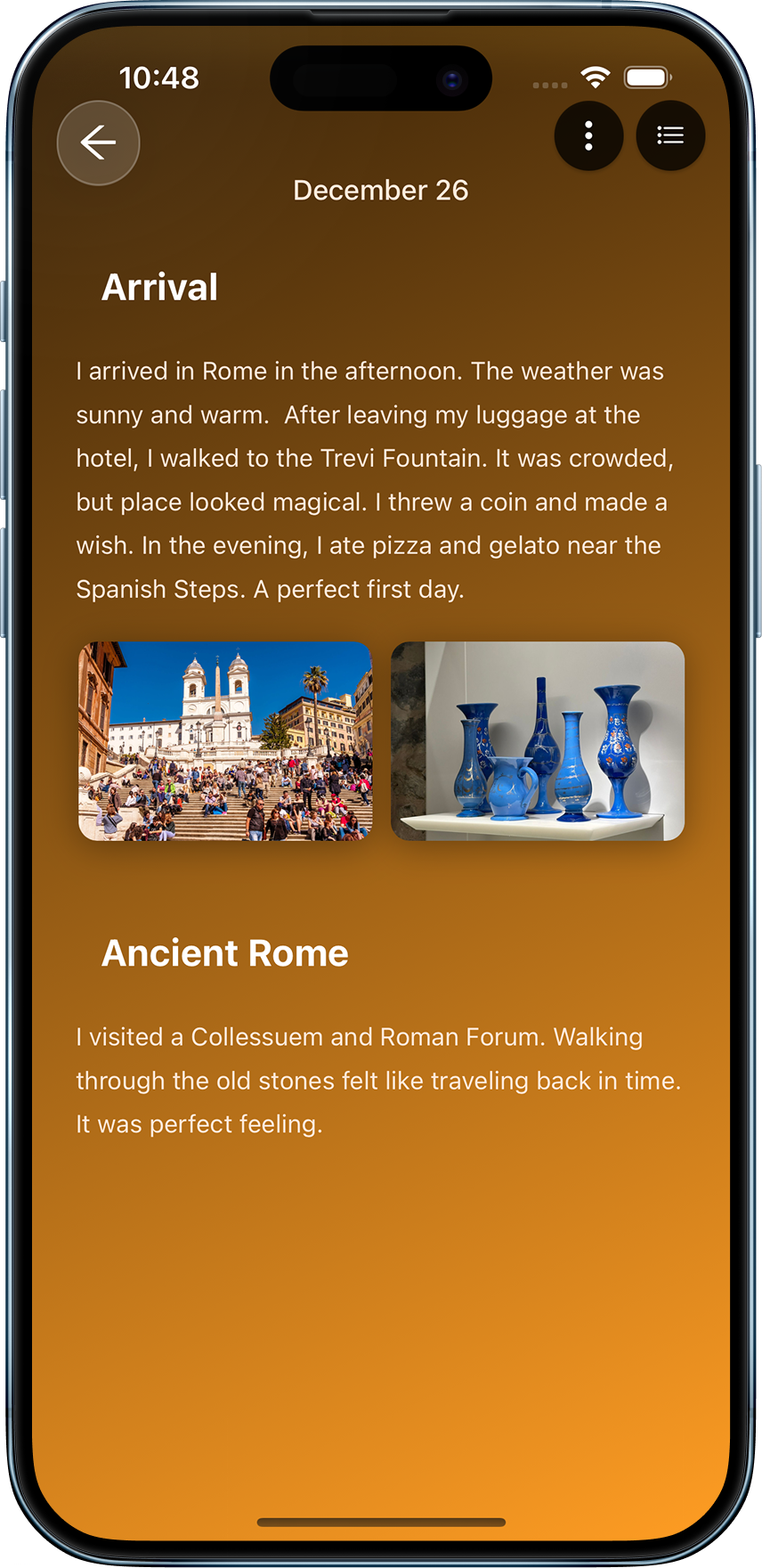 View your travel journals in stunning, professionally designed templates that make your stories come alive with elegant layouts and visuals.